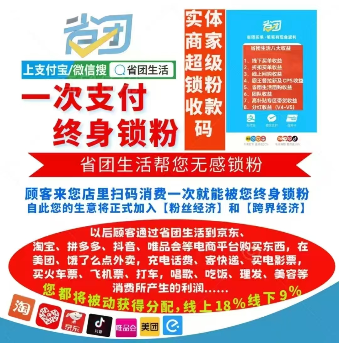 被商家的支*付码锁定,两年后也许将无粉可锁,到时候估计省团会有几百万商家入驻,异业联盟生态形成